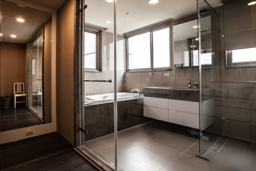 浴室是个不容忽视的场域,它让人洗净一天的疲劳,也是享受spa或自在妆扮的地方,踏出此空间便焕然一新,帅气美丽的约会去。