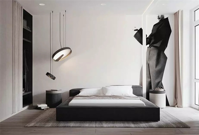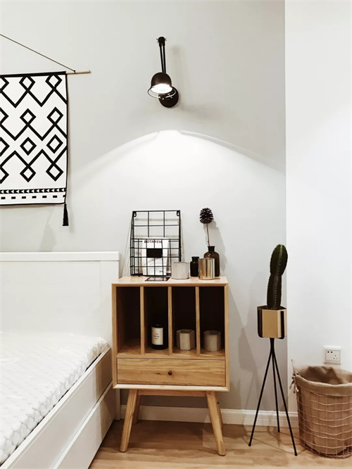 这种带衣帽间的卧室真的超级方便,晚上睡觉前把睡衣脱下,放在拐角的柜子里,拿取都很方便。